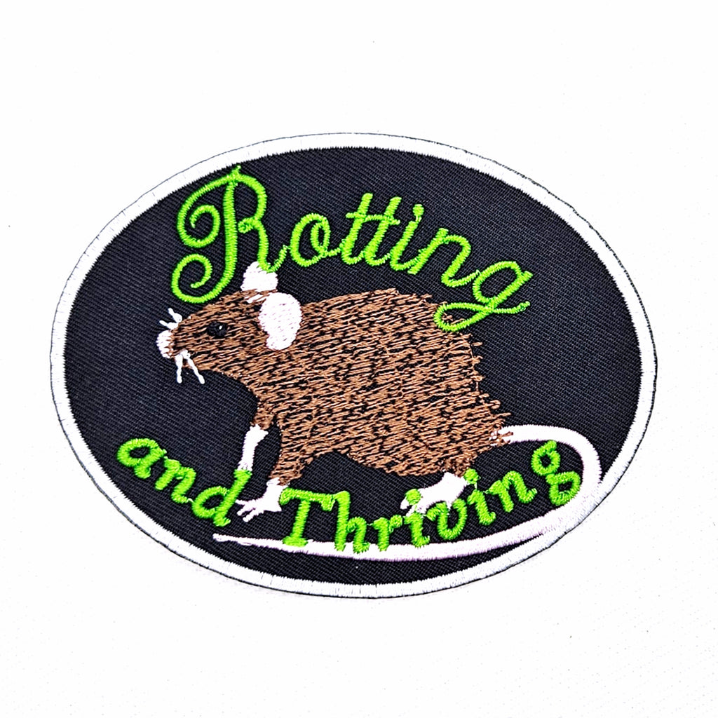 You can be both! Don't be afraid to thrive even while we're all rotting away, because technically we're all slowly rotting, but let's do it in style! This embroidered patch features a rat that is all about rotting AND thriving!