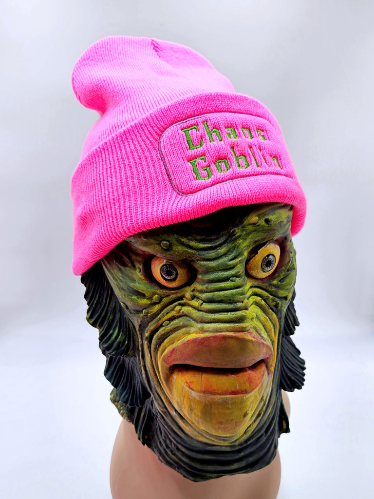 Be the Chaos Goblin you want to see in the world! Now in HOT PINK- This warm pink knit beanie has "Chaos Goblin" embroidered on the front in purple and green colors for a spooky cool look.