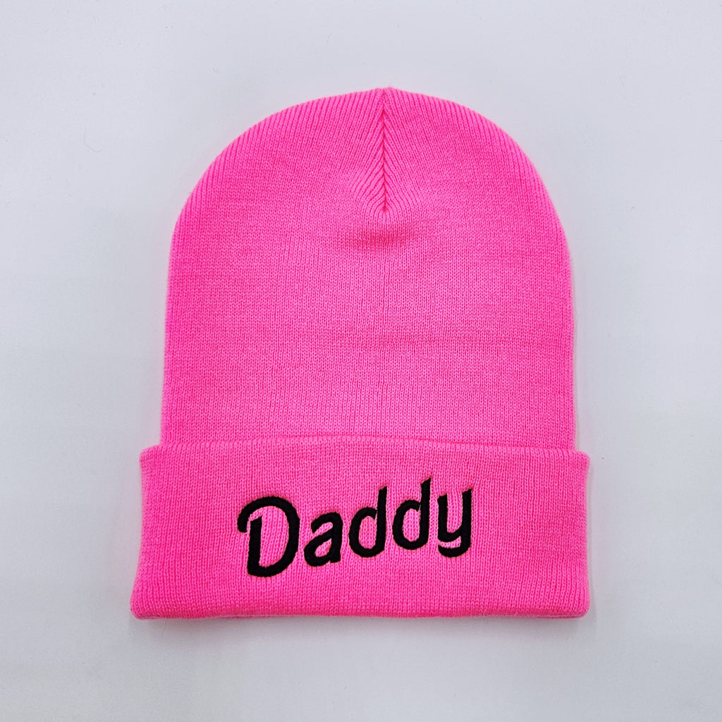 Are you Daddy but you also love hot pink and pretty things? That's the best way to be. This hot pink knit beanie shows that you are the "Daddy" in black embroidery.